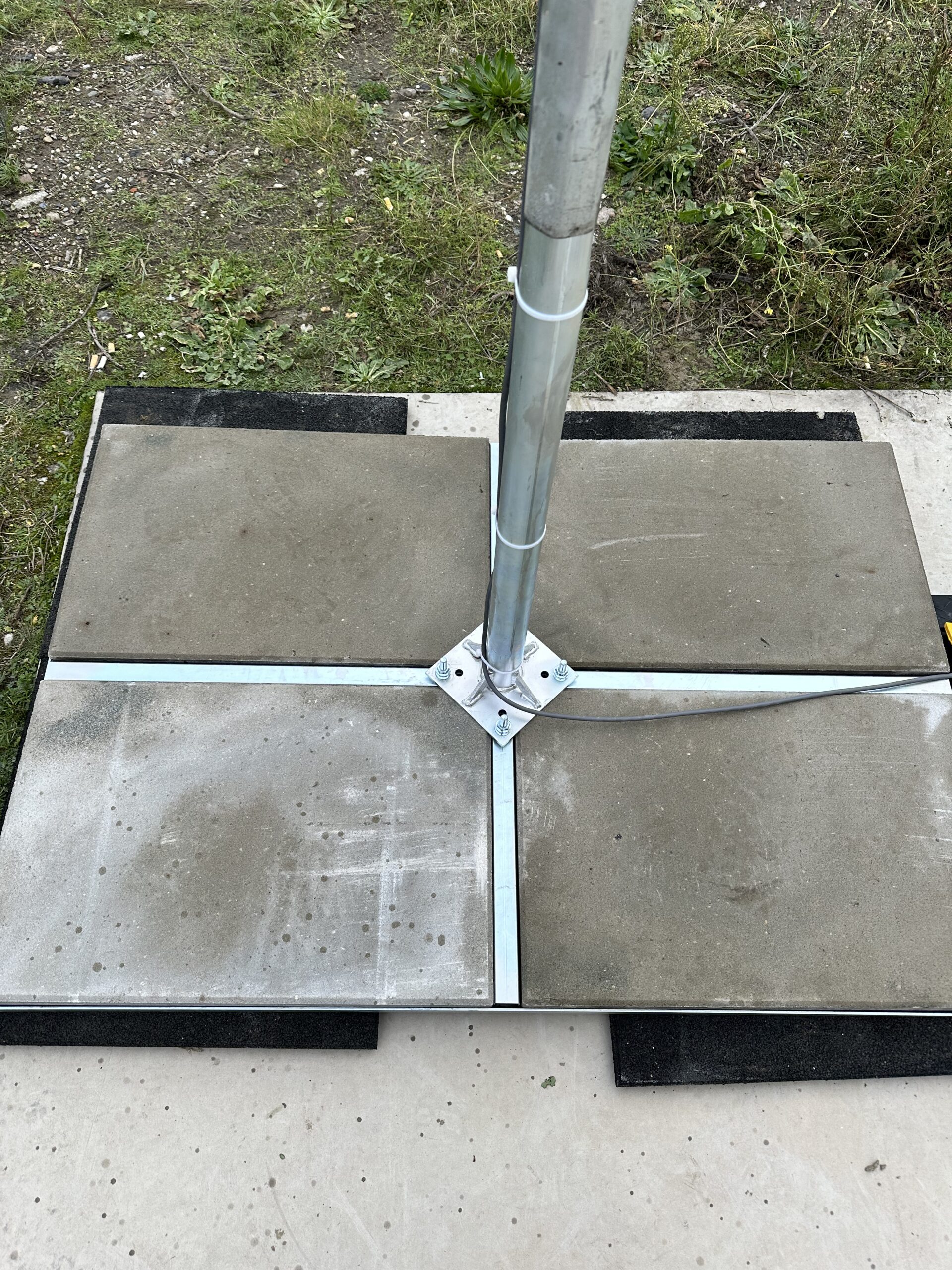 The Blueqon tile foot system was used to securely mount the Starlink antenna without permanent roof penetration, making it ideal for temporary and flexible installations.